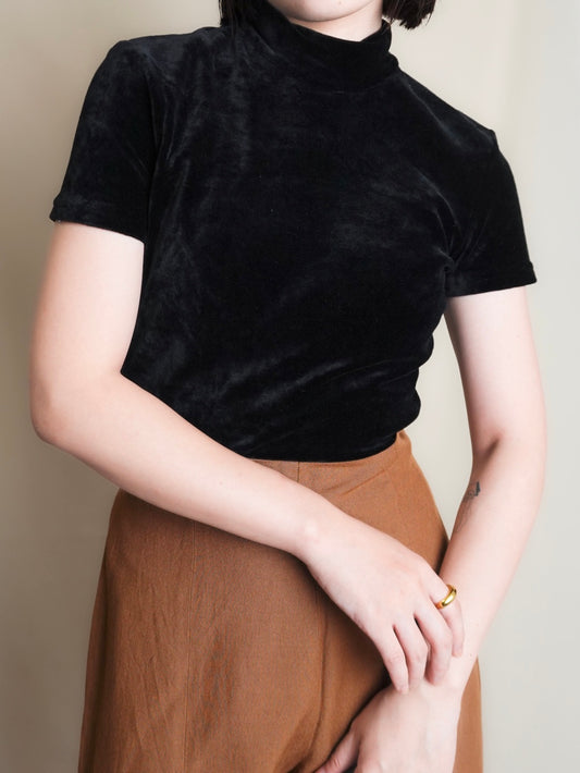 90s "GAP" Half sleeve Velours Tops - Black