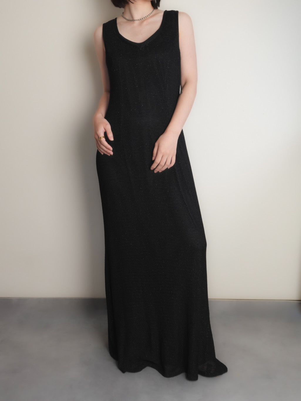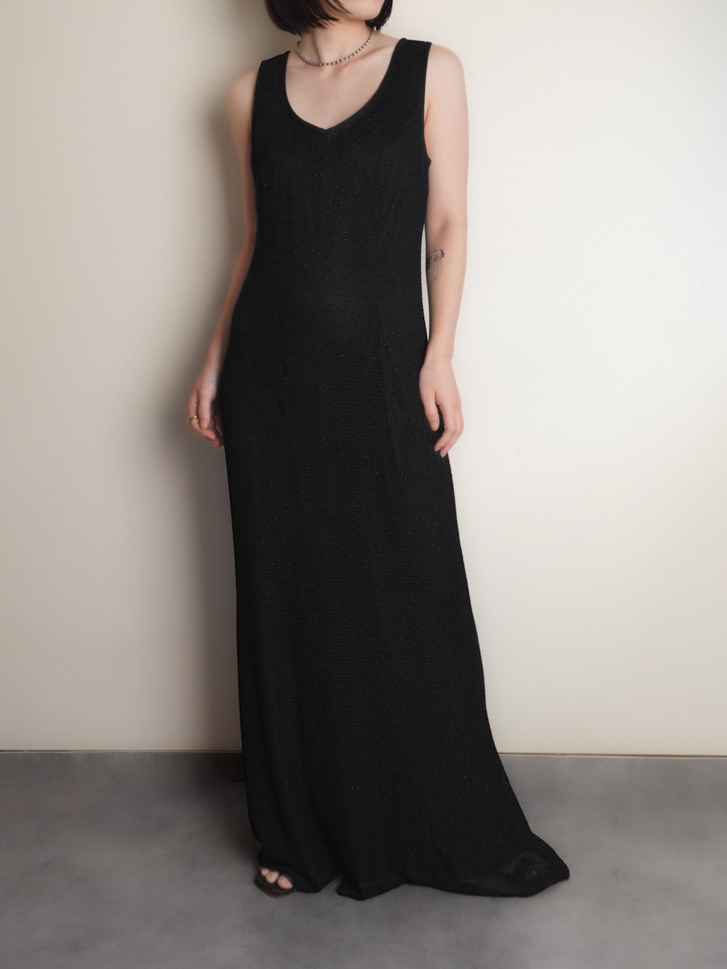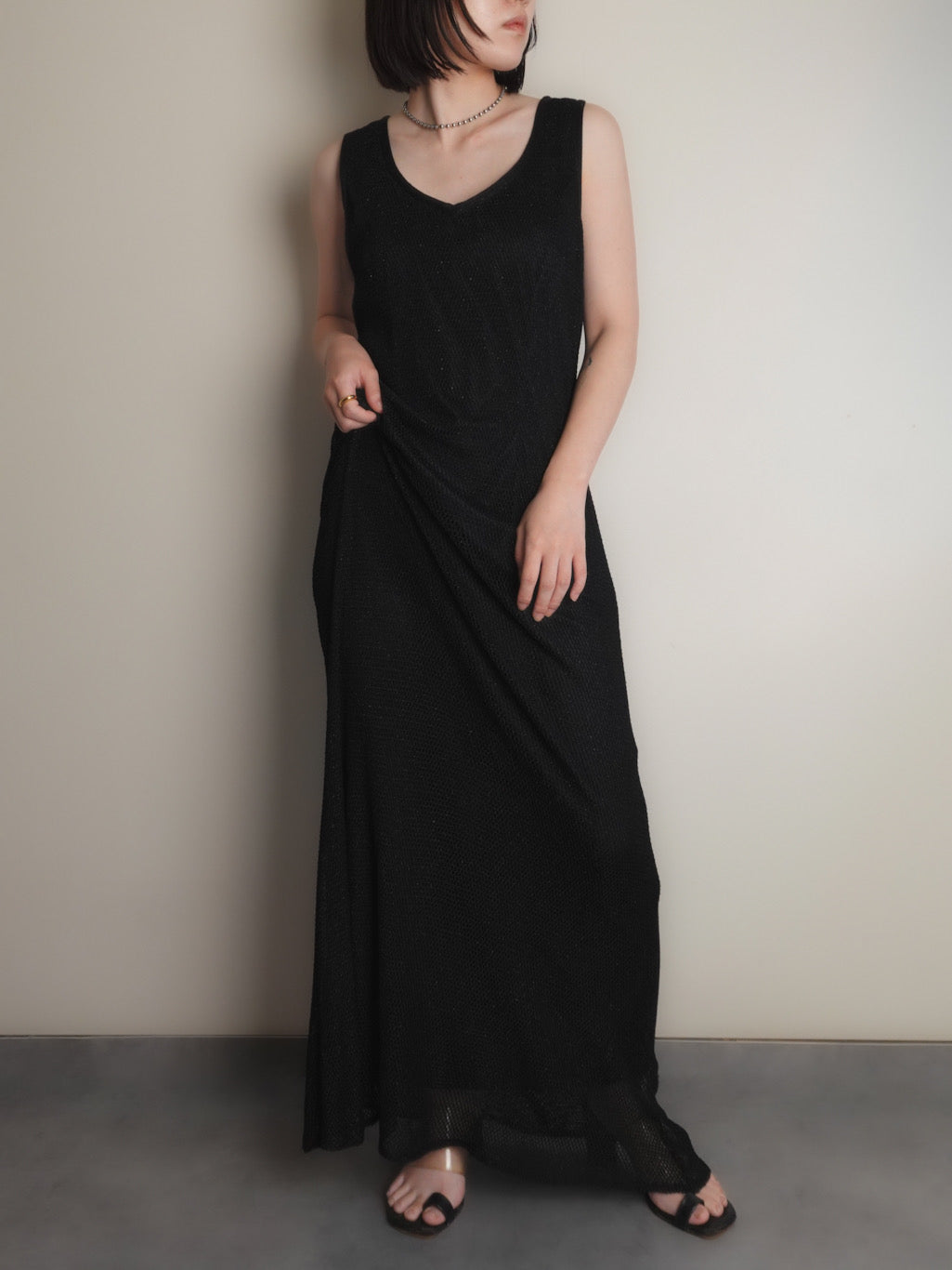 メッシュ素材のノースリーブワンピース。
