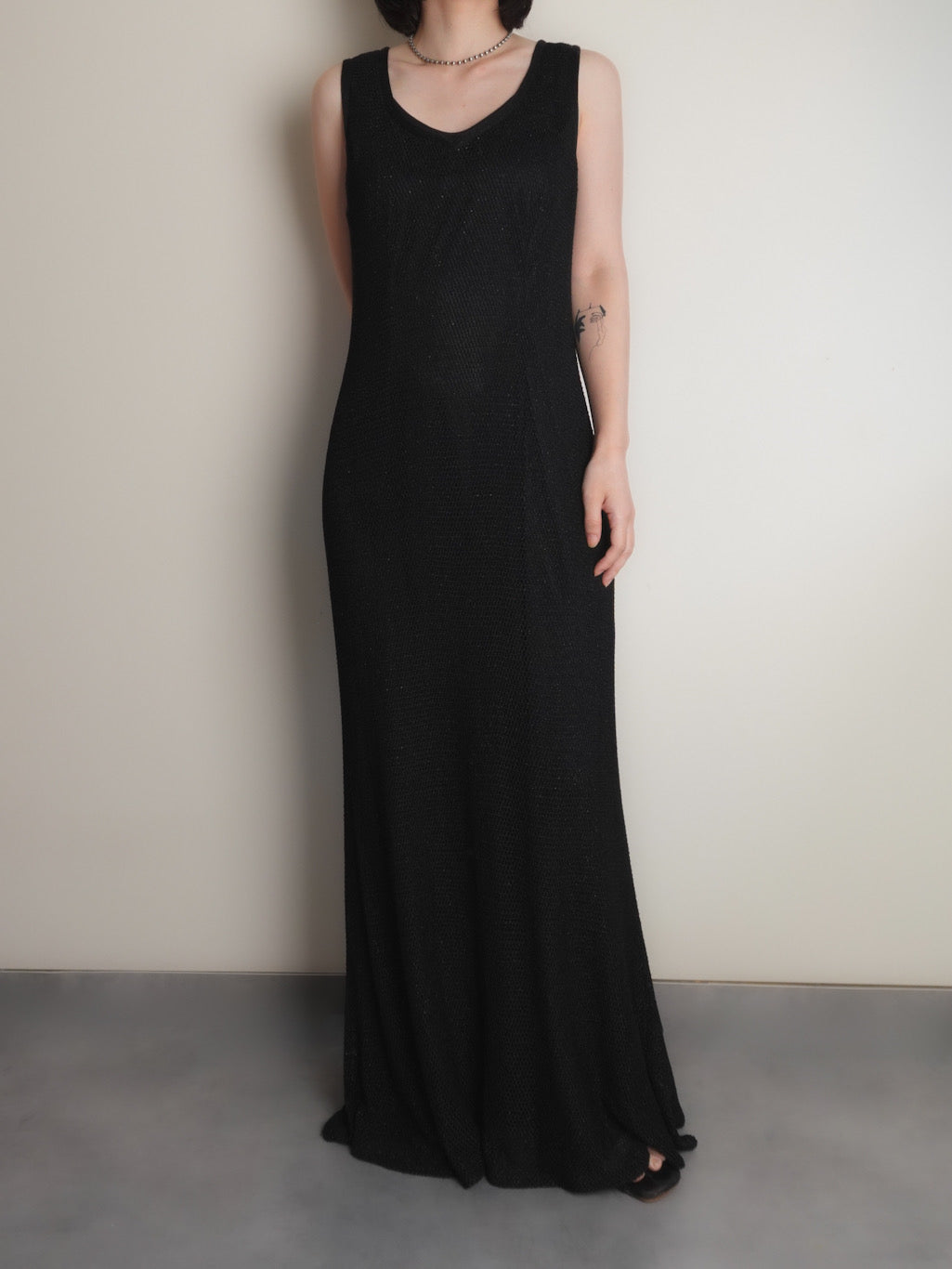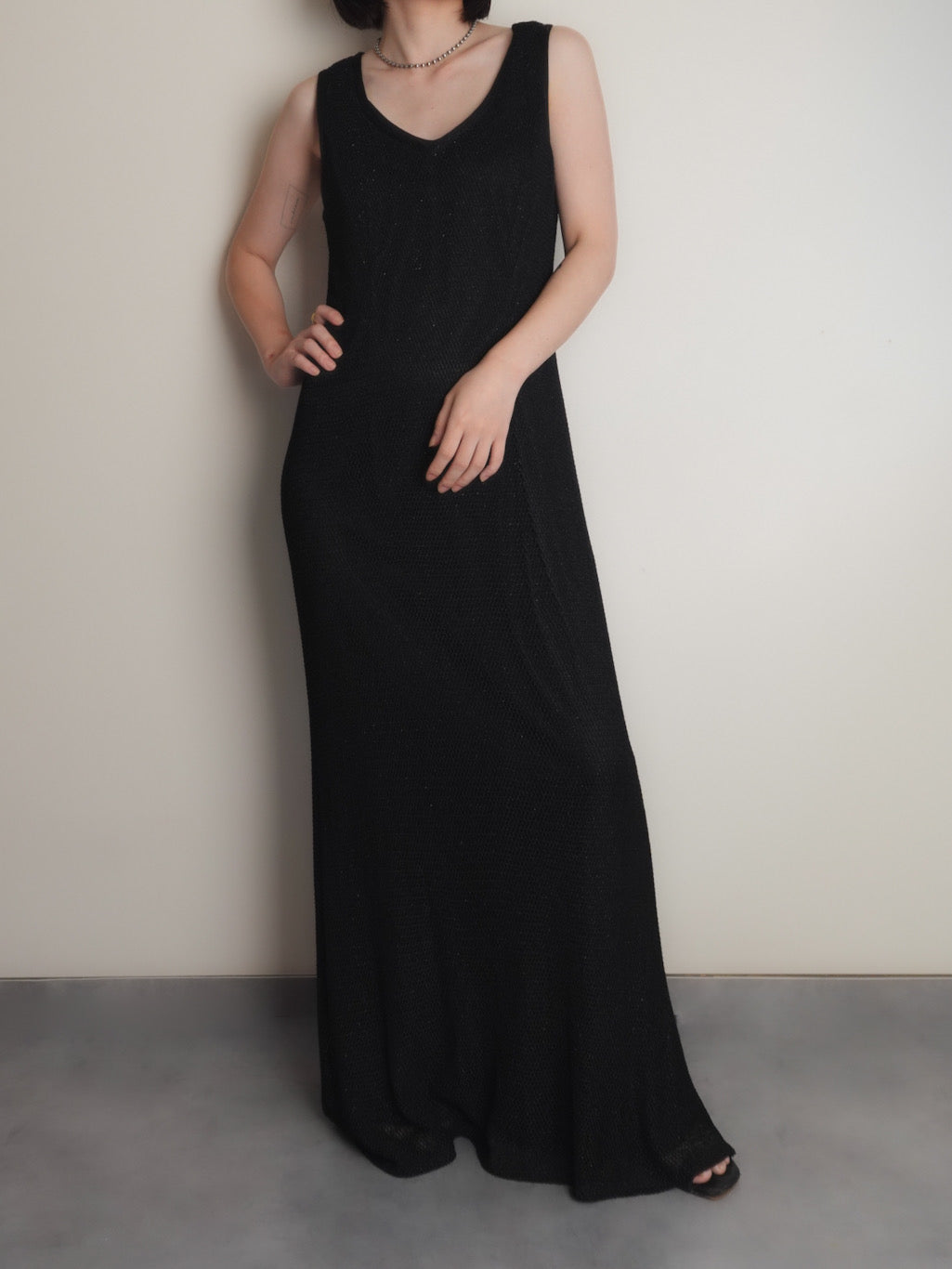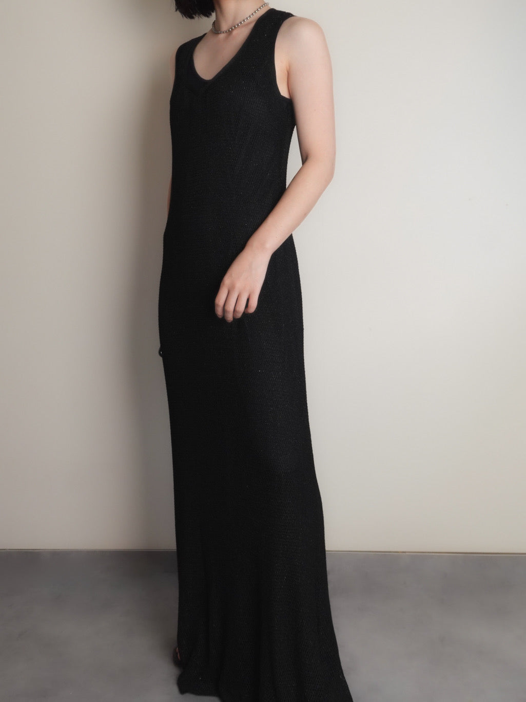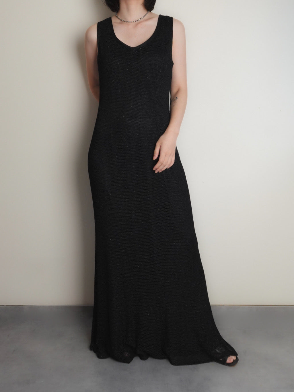 メッシュ素材のノースリーブワンピース。