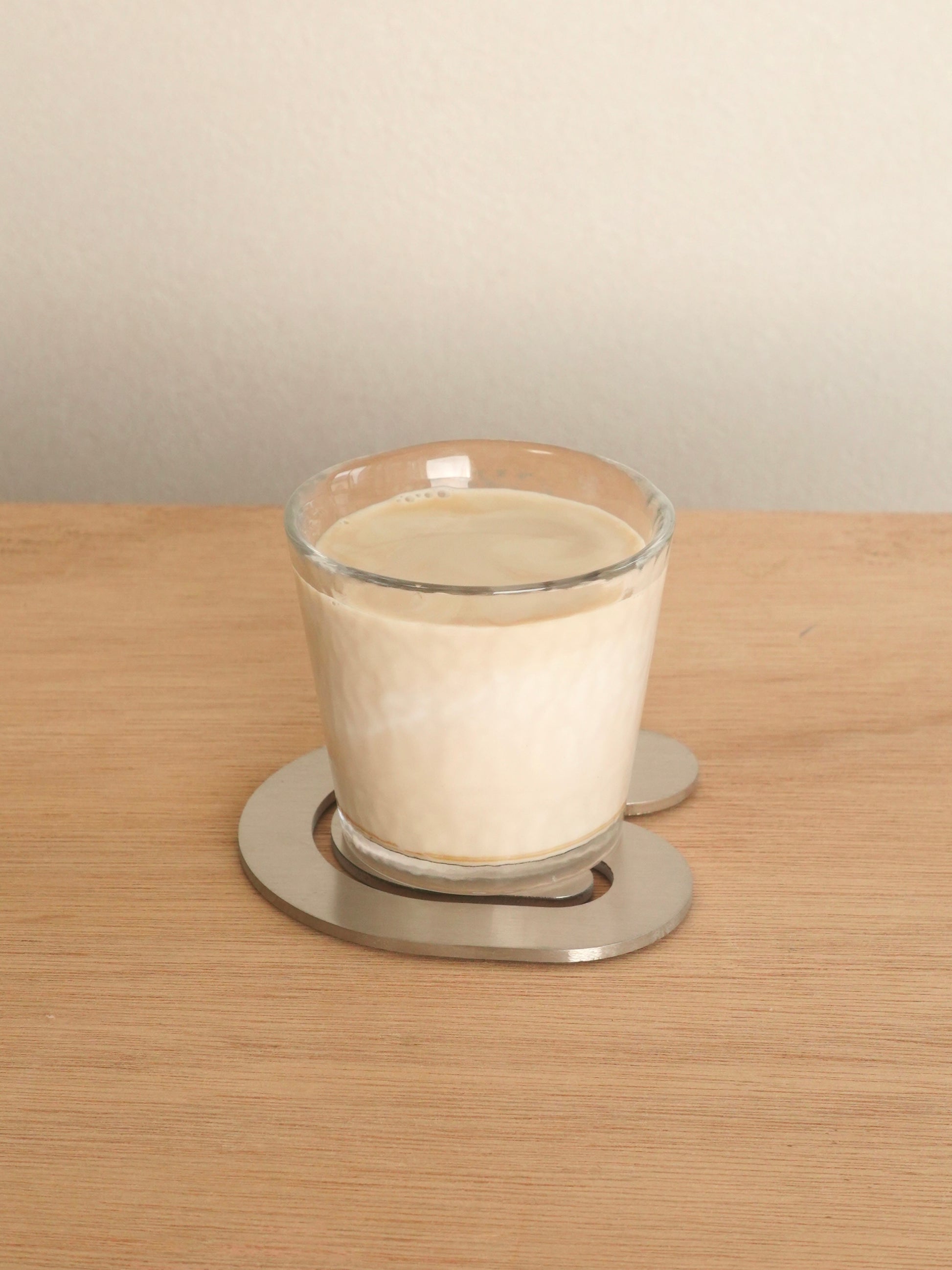 ステンレススチール製の、遊び心あるデザインのコースター。