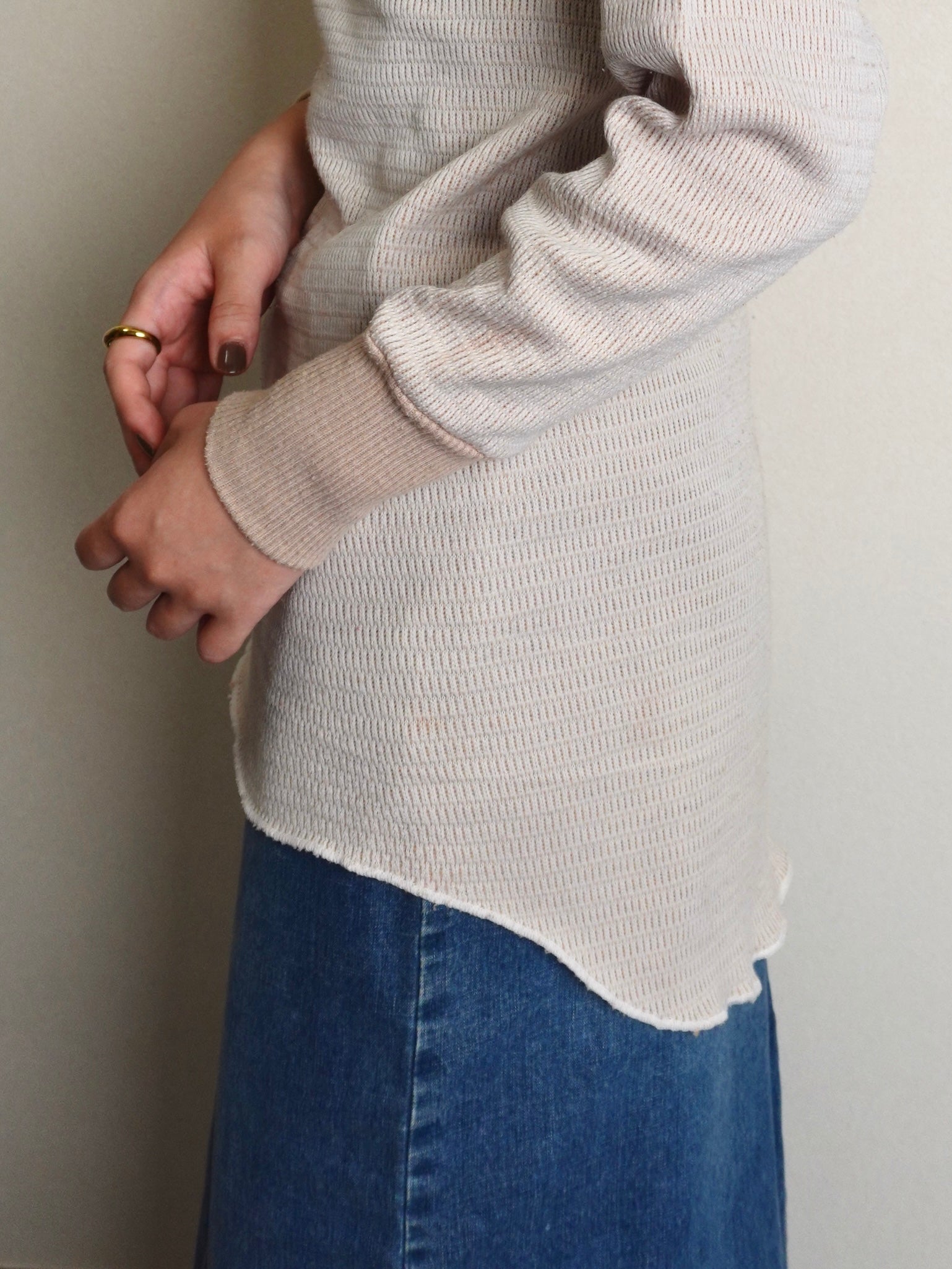 やや長めの丈感で、裾を出してレイヤードするのもオススメです。