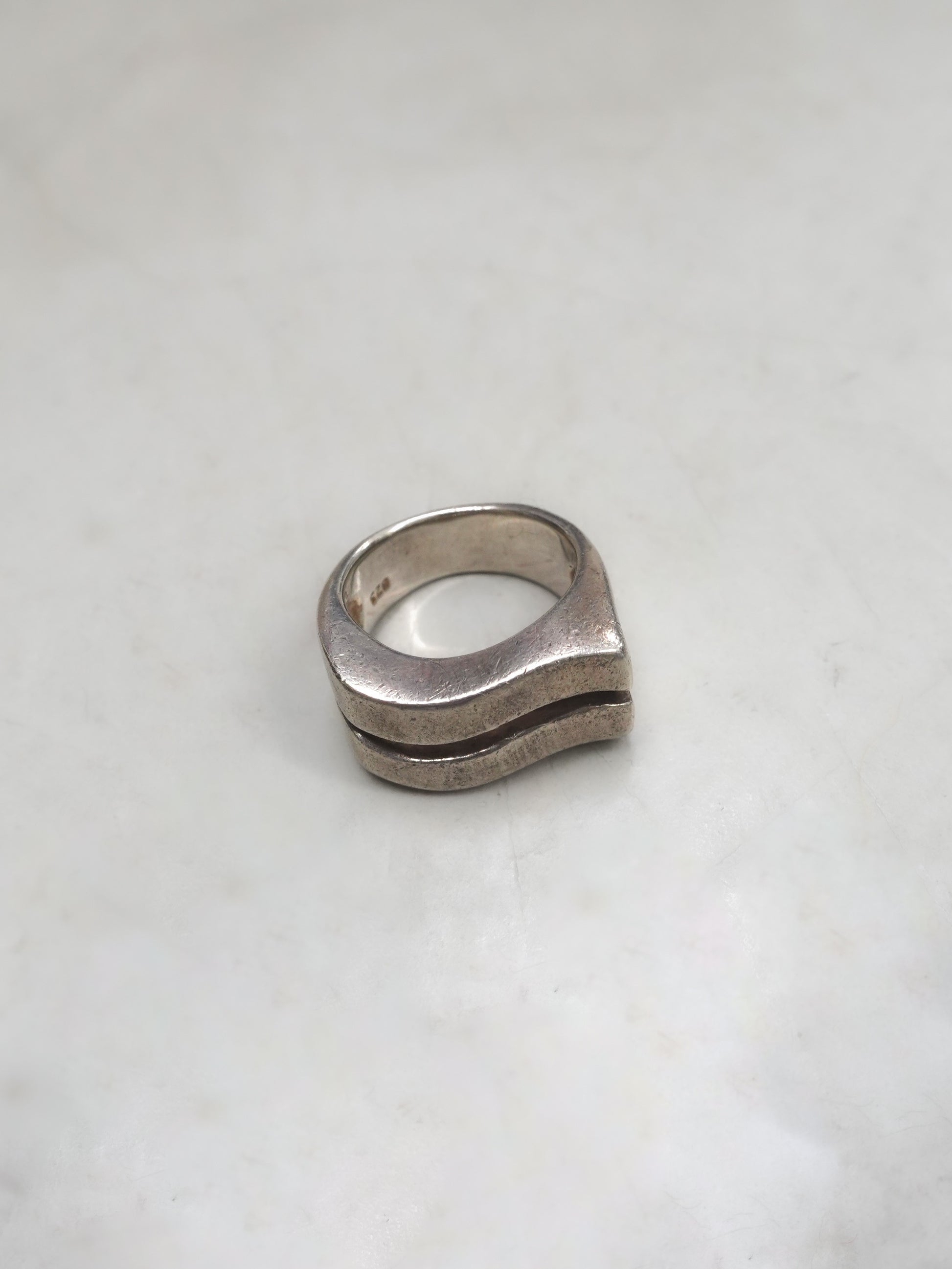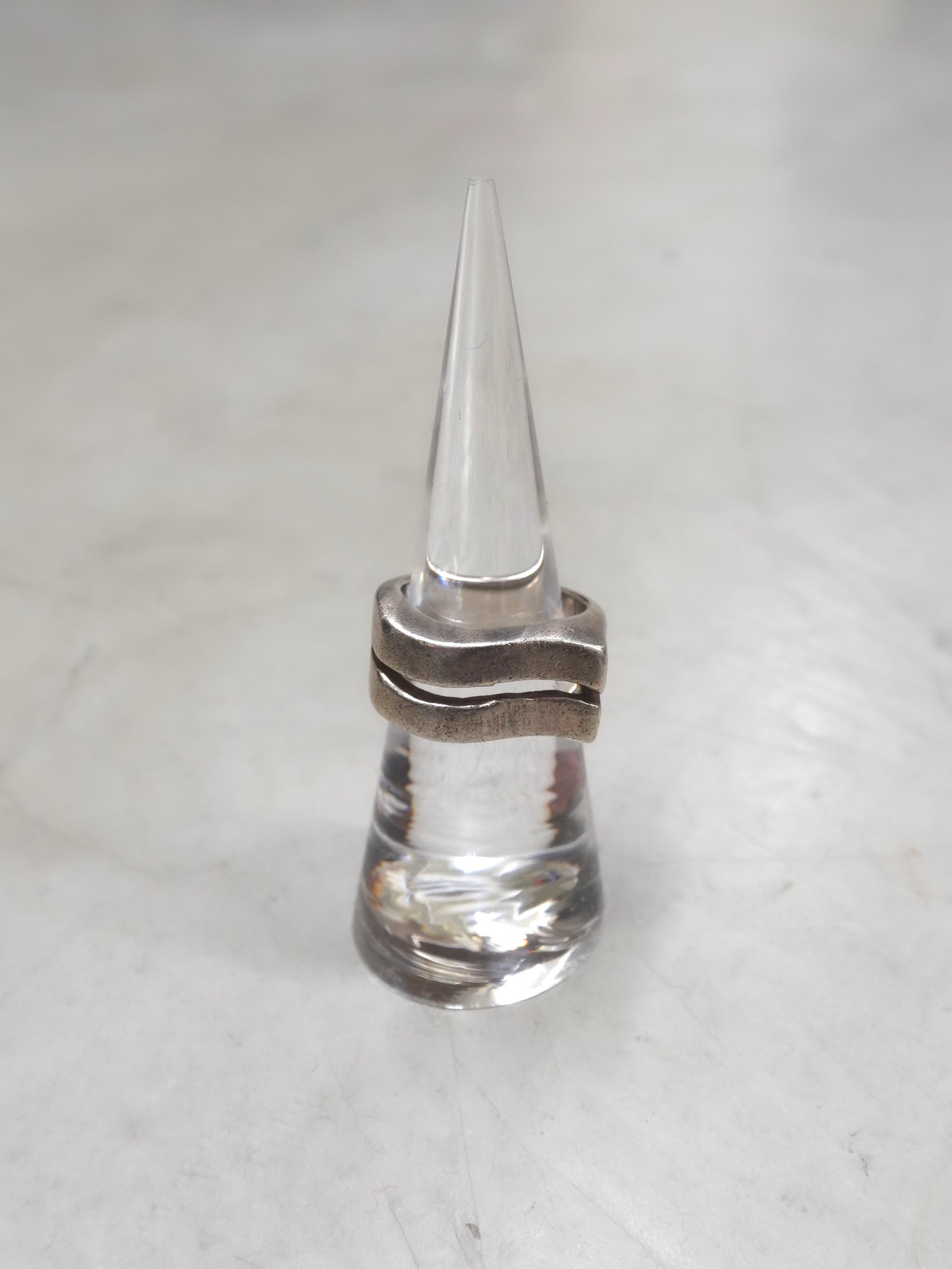 ウェーブしたデザインと、石を使わずフォルムだけで存在感を出したモダンなリング。