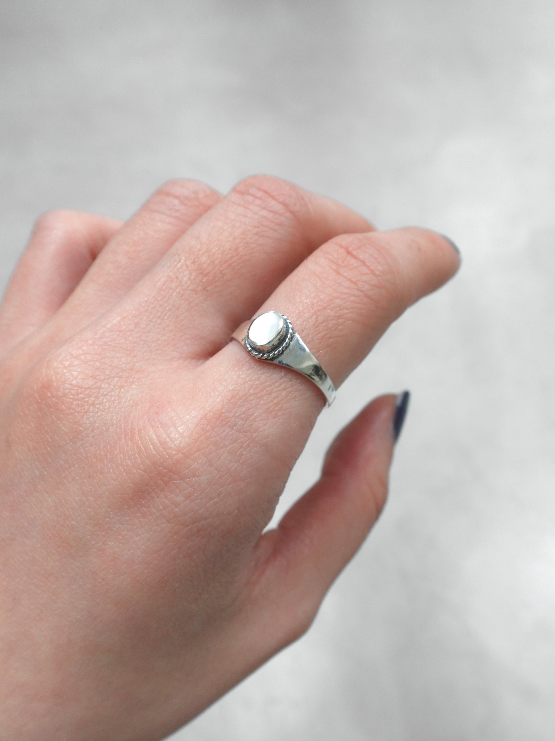 小ぶりな白蝶貝 をあしらったシンプルなリング。
