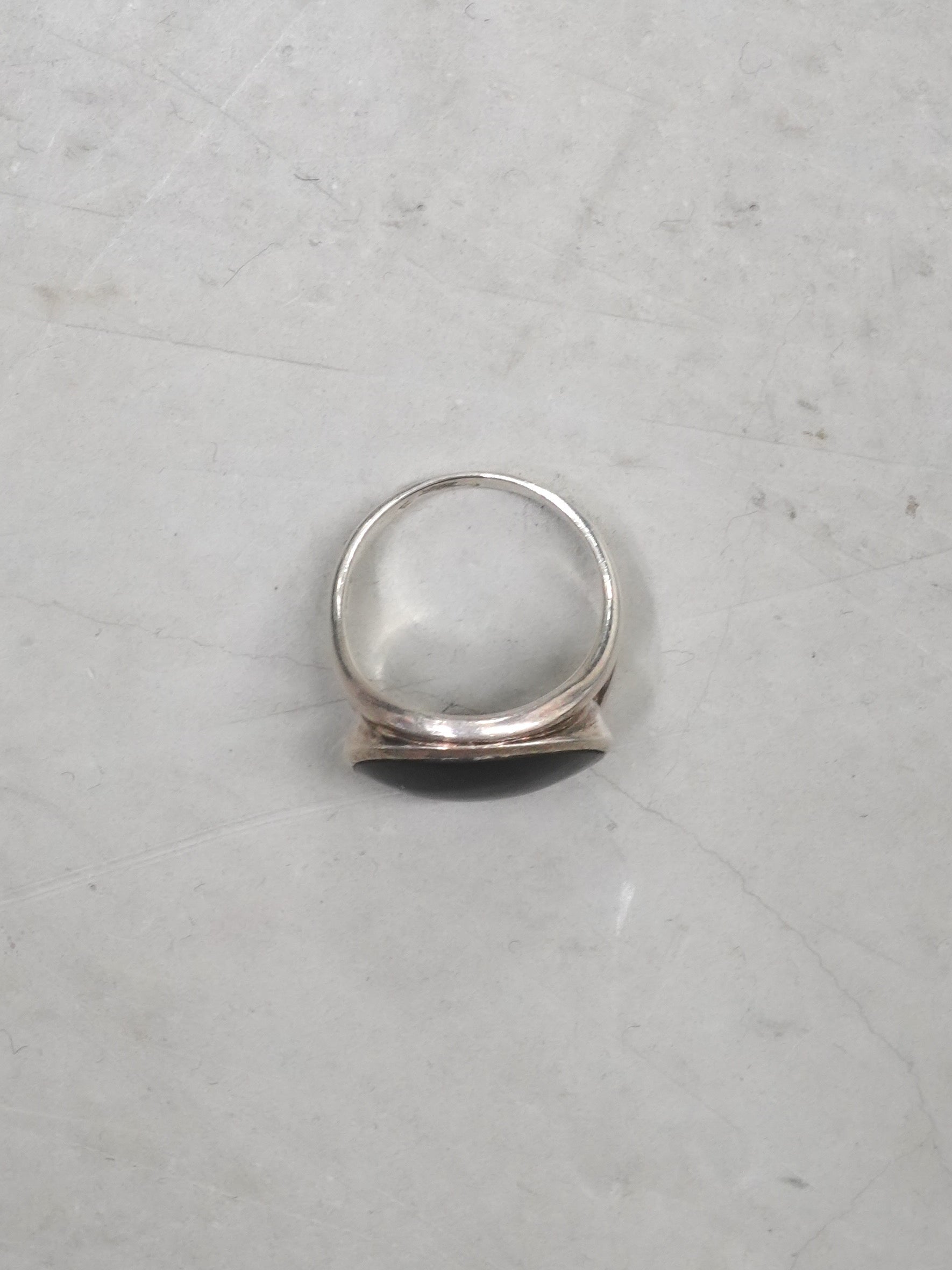 艶のあるオーバルのオニキスに、クラシカルな雰囲気のあるリング。