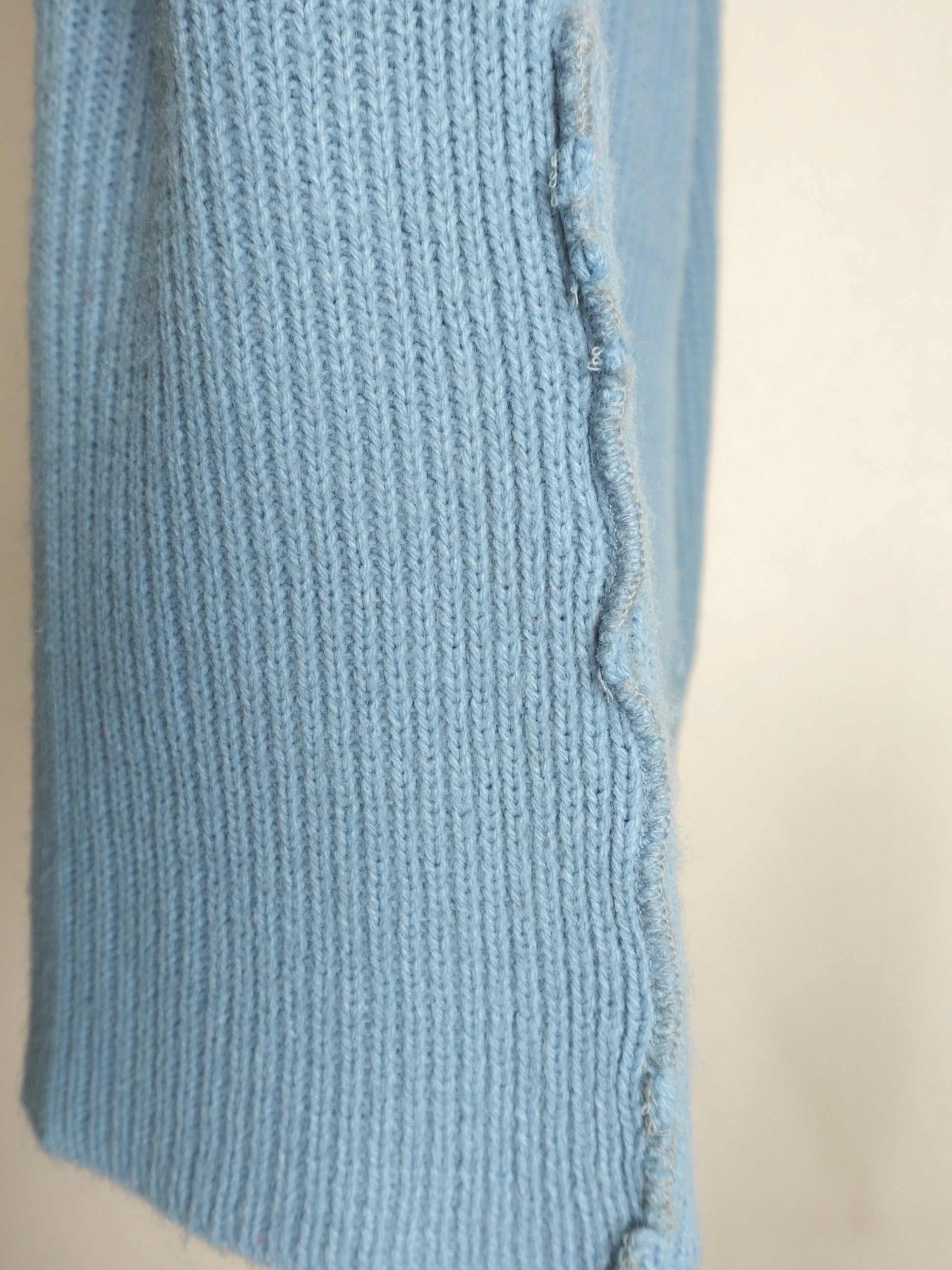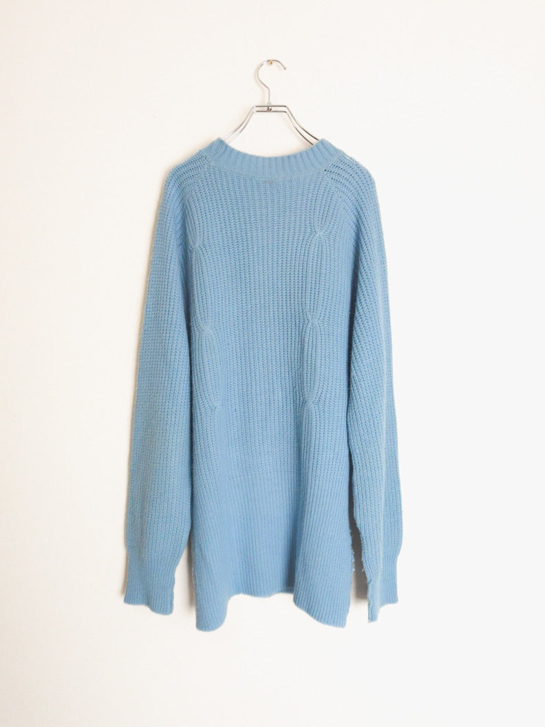 柔らかなライトブルーは目を惹く、オーバーニット。
