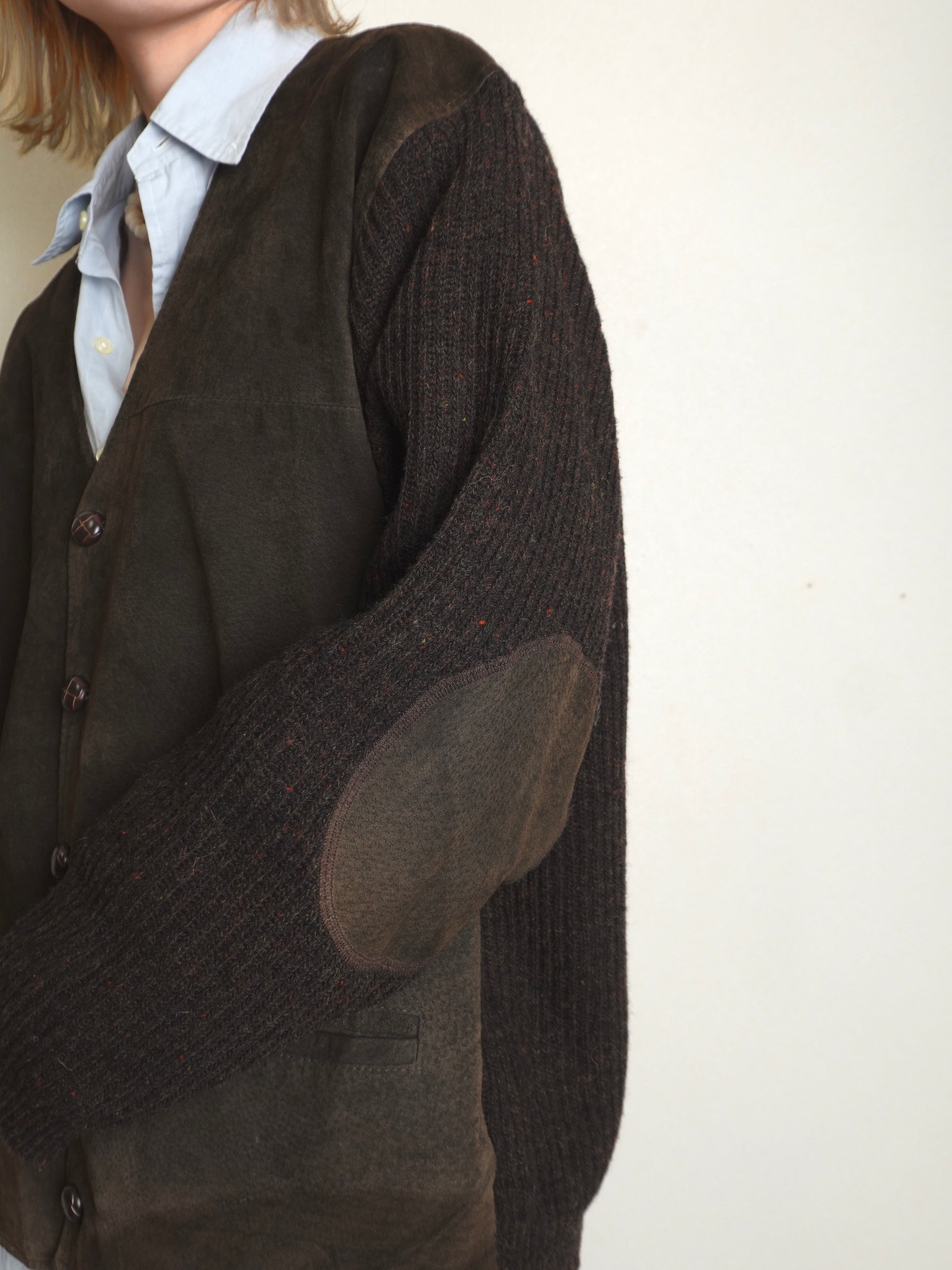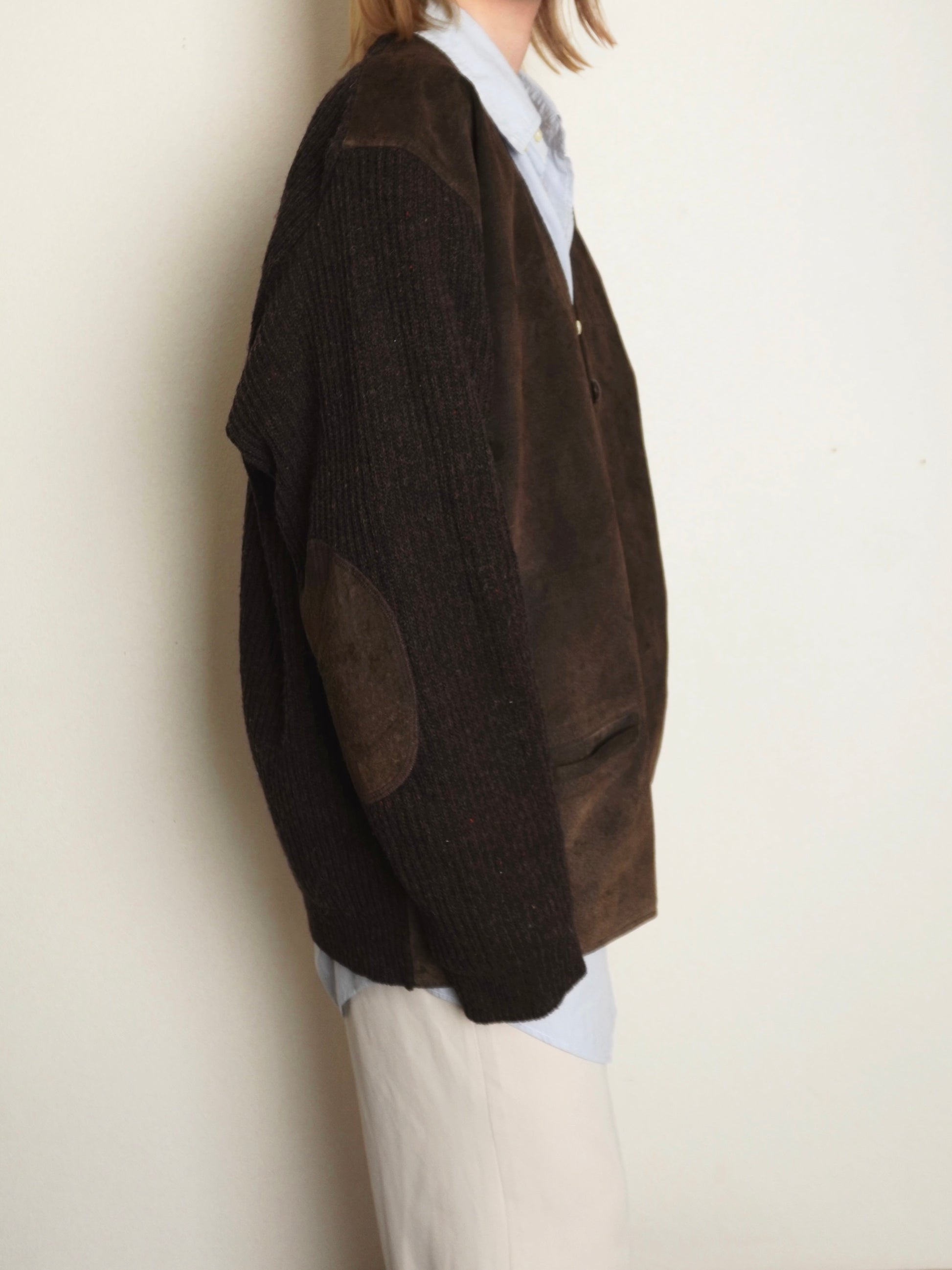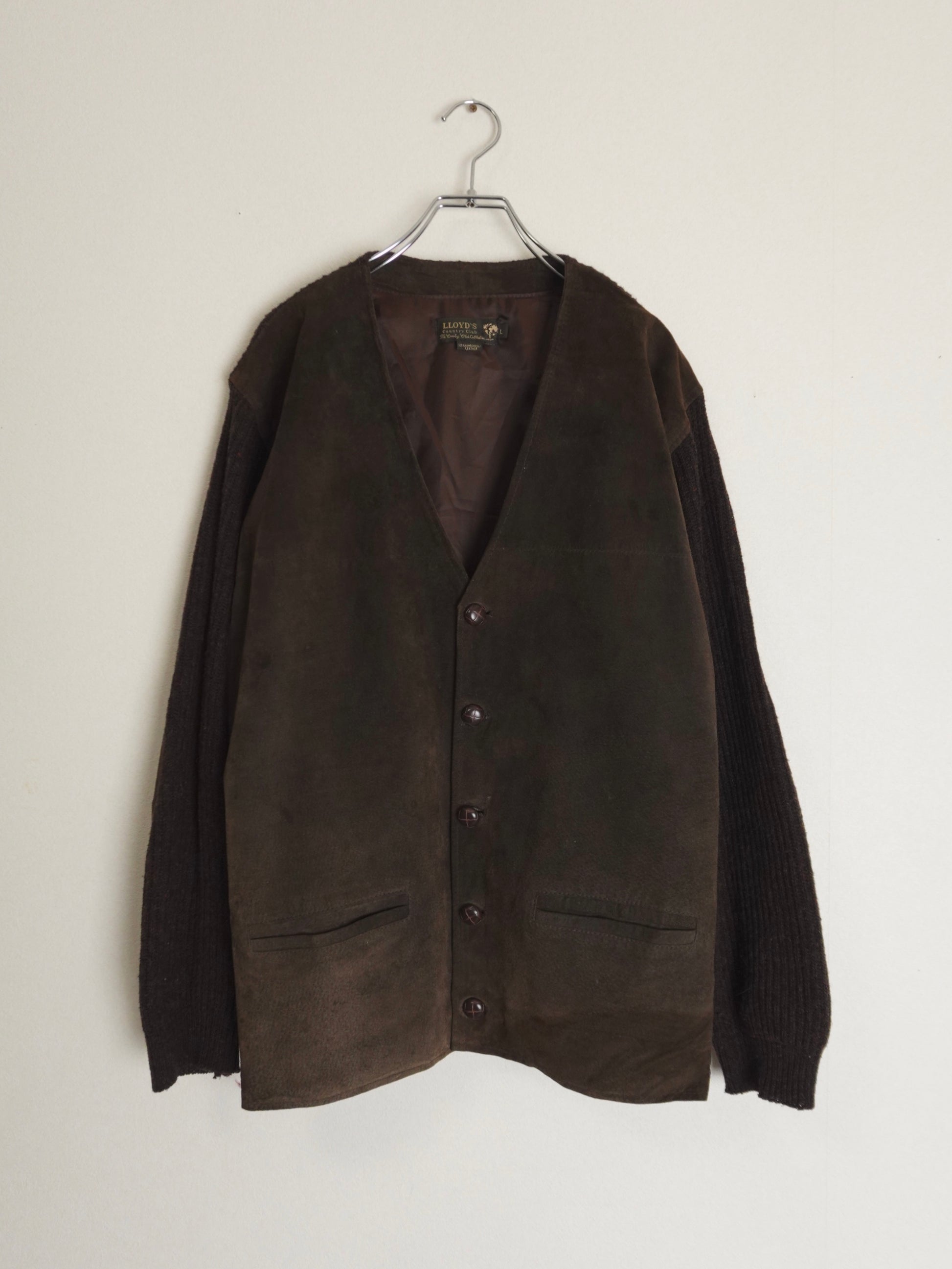スエードとニットが組み合わせられたカーディガン。
