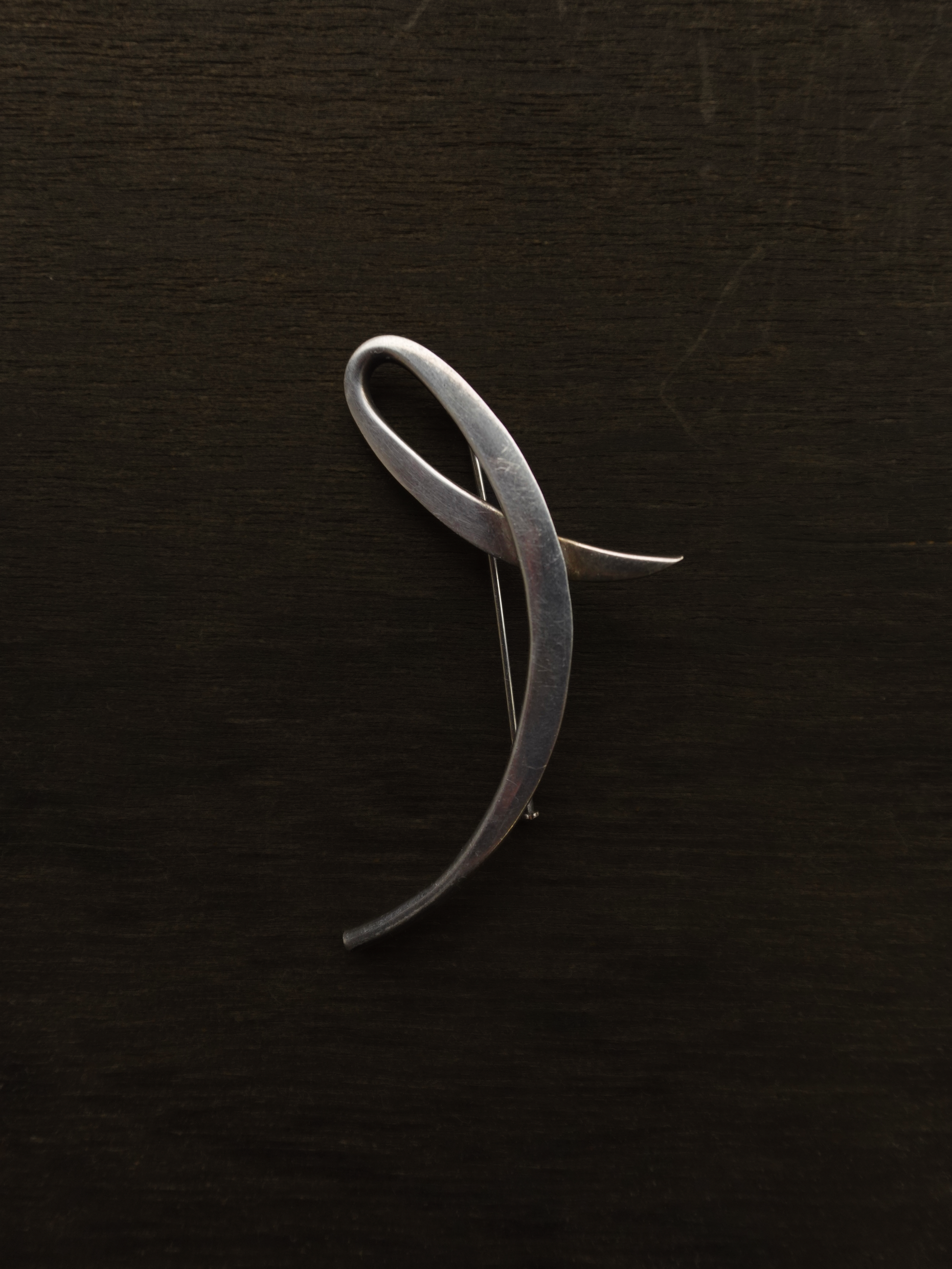 フランスで買い付けた、繊細なカーブとシャープな先端が印象的なシルバーブローチ。