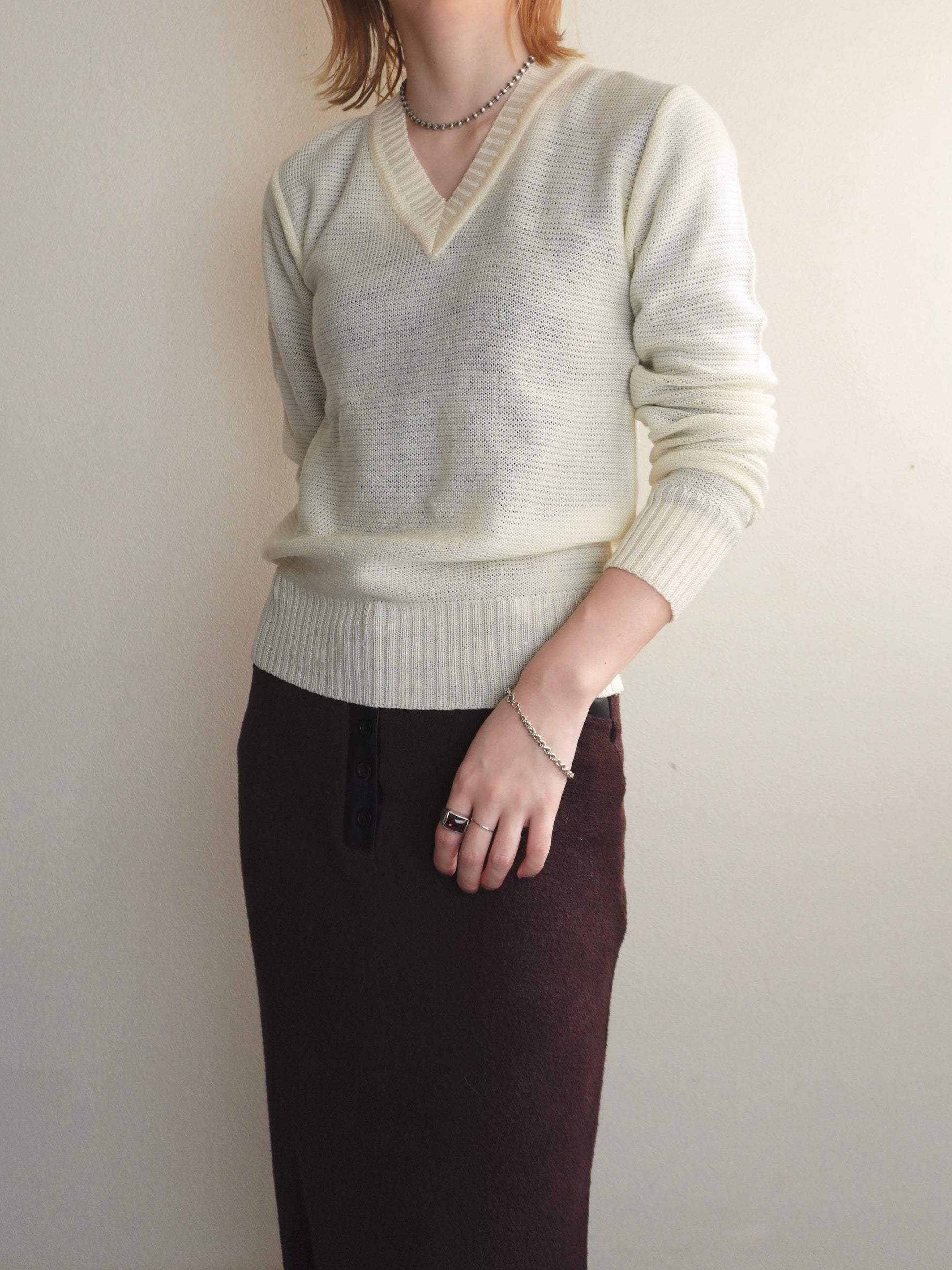 程よく開いたVネックが、首元をスッキリと見せてくれるニットプルオーバー。
