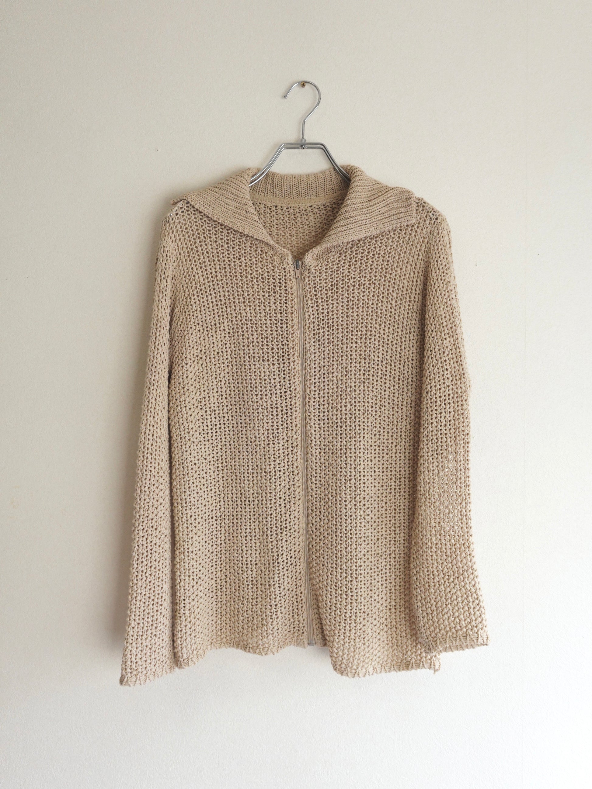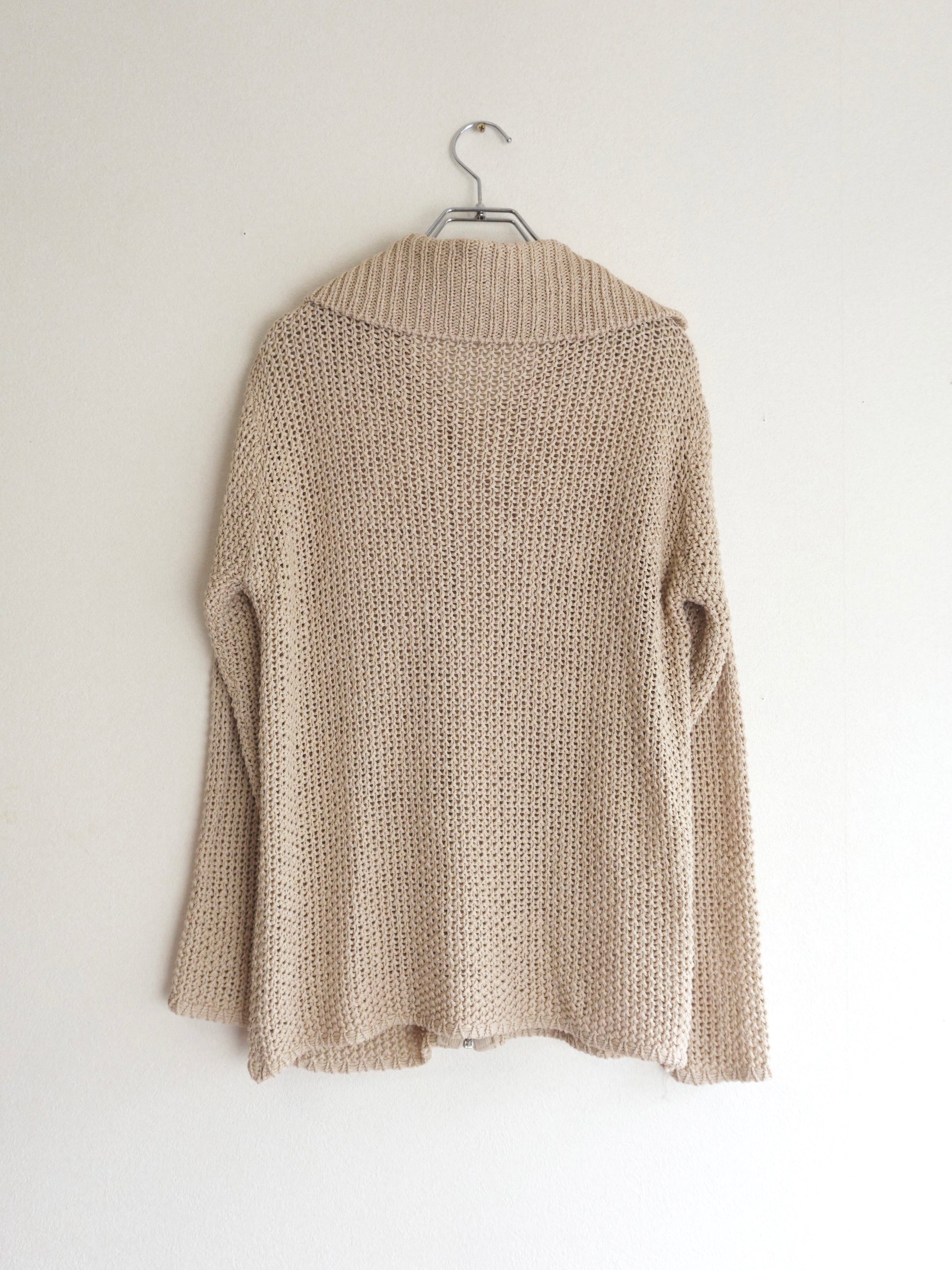 ざっくりとした編み地がかわいい、ニットジップアップカーディガン。